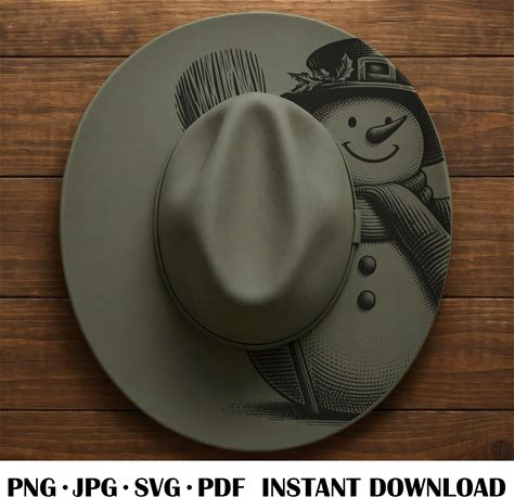 Christmas Snowman Wide Brim Hat, Laser Hat Burning Stencil, Digital Download PNG, Hat Burning Template, Hat Laser Engraving Design