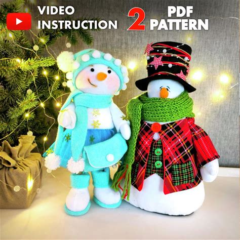 Set Of 2 PDF Sewing Patterns - Snowgirl & Snowman Gentleman With Hat/ 34 cm 13.5" /35 Cm14»DIY + Free Video Tutorial Christmas Gift, Winter
