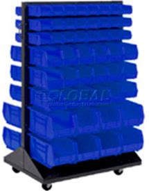 Global Industrial Mobile Double Sided Floor Rack - 100 Blue Stacking Bins 36 X 55
