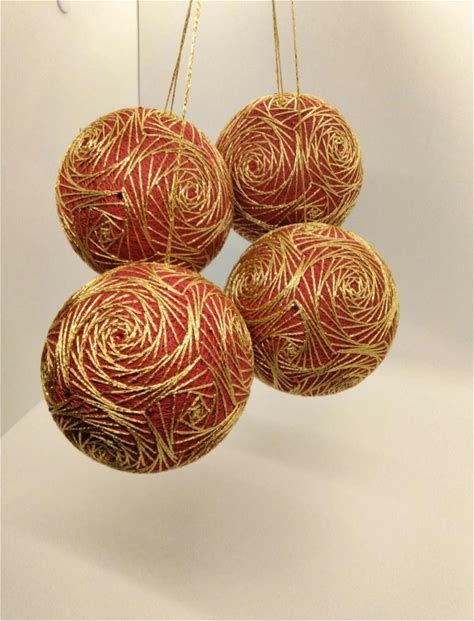 Set Of 4 Pieces Hand Stitched Decorative Balls Temari - Red With Gold Cobweb Pattern