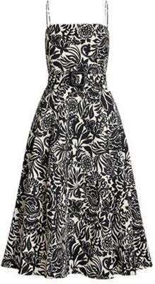 Lauren Ralph Lauren Floral Belted Faille Cocktail Dress Woman Midi Dress Black Size 2 Polyester