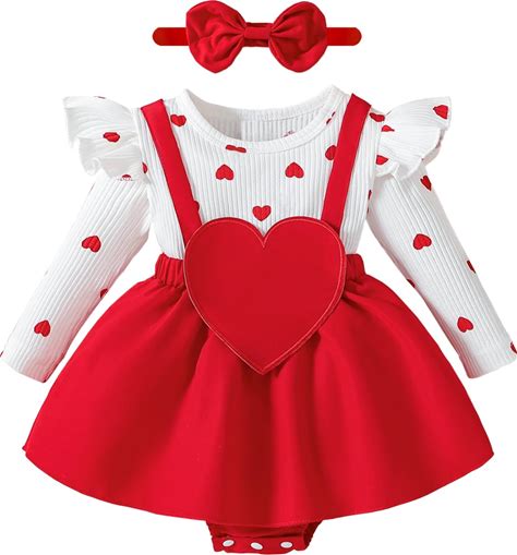 WOLBAY Newborn Infant Valentines Baby Girl Outfit Love Print Romper Drees Ruffles Bodysuit Jumpsuit Clothes And Headband