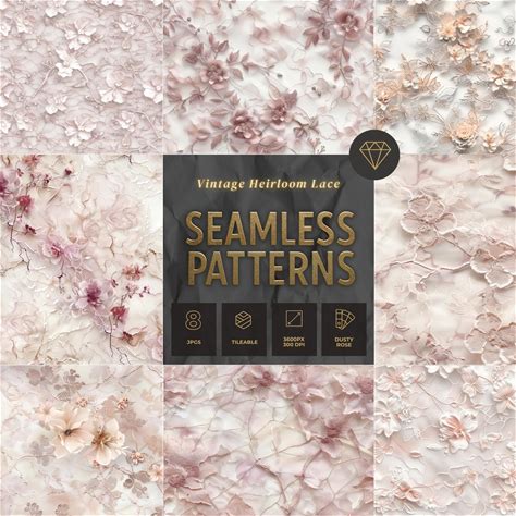 Vintage Heirloom Lace Seamless Patterns: Dusty Rose Botanical Background Textures (Digital Download)