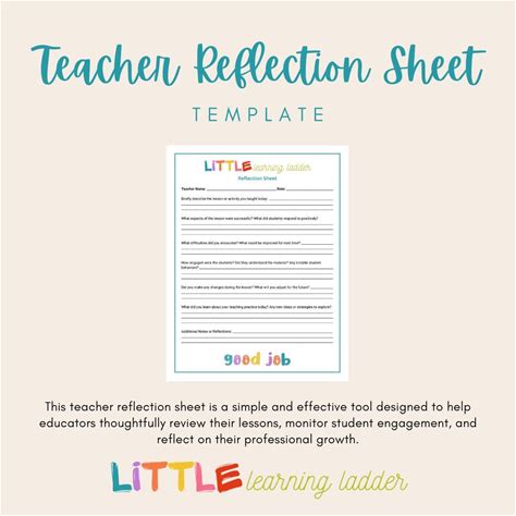 Teacher Reflection Sheet | Printable Lesson Review & Self-Assessment | Classroom Reflection Form | Teaching Tool