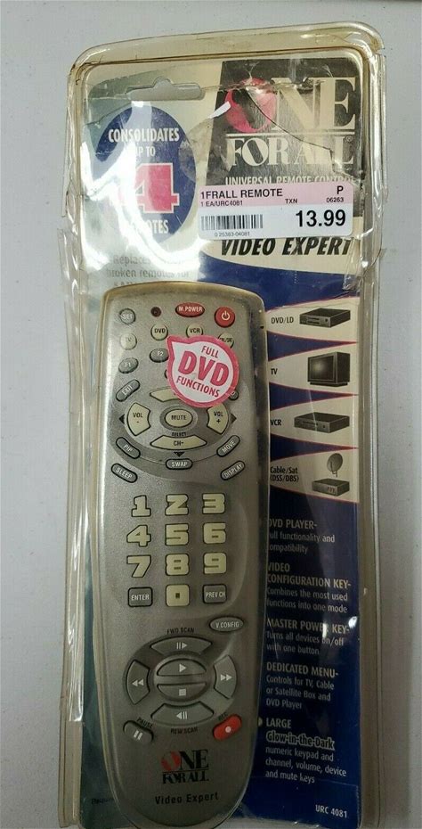 One For All URC 4081 Video Expert 4 Device Universal Remote TV DVD VCR CBL/SAT. URC. Silver. Remote Controls. 025383040818.