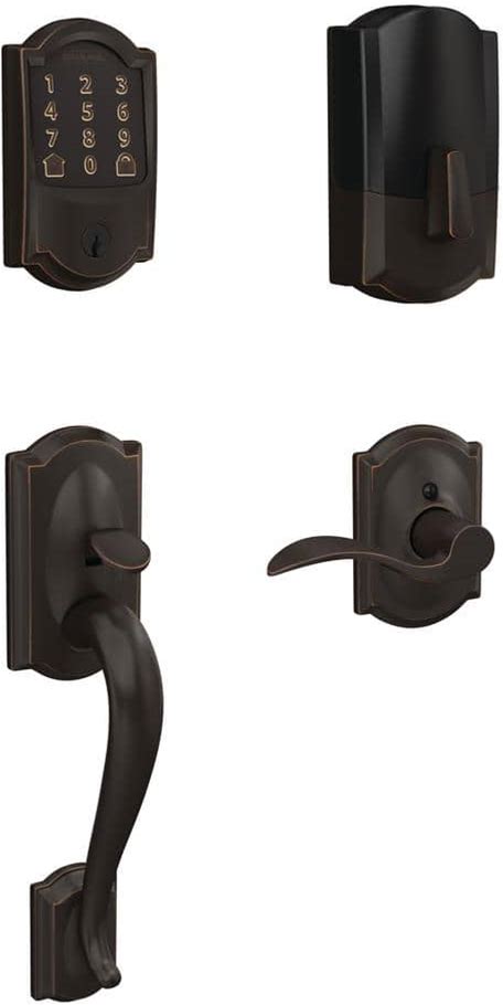 Century Aged Bronze Encode Smart Wi-Fi Deadbolt With Alarm And Century Handleset And Latitude Handle