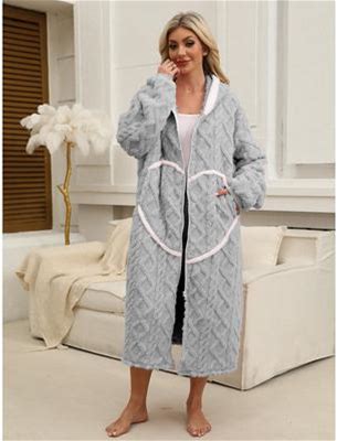 Frsasu Womens Flannel Hooded Robes, Soft Warm Love Chest Printed Fluffy Women Bathrobe Pajamas For Shower House Loungewear White