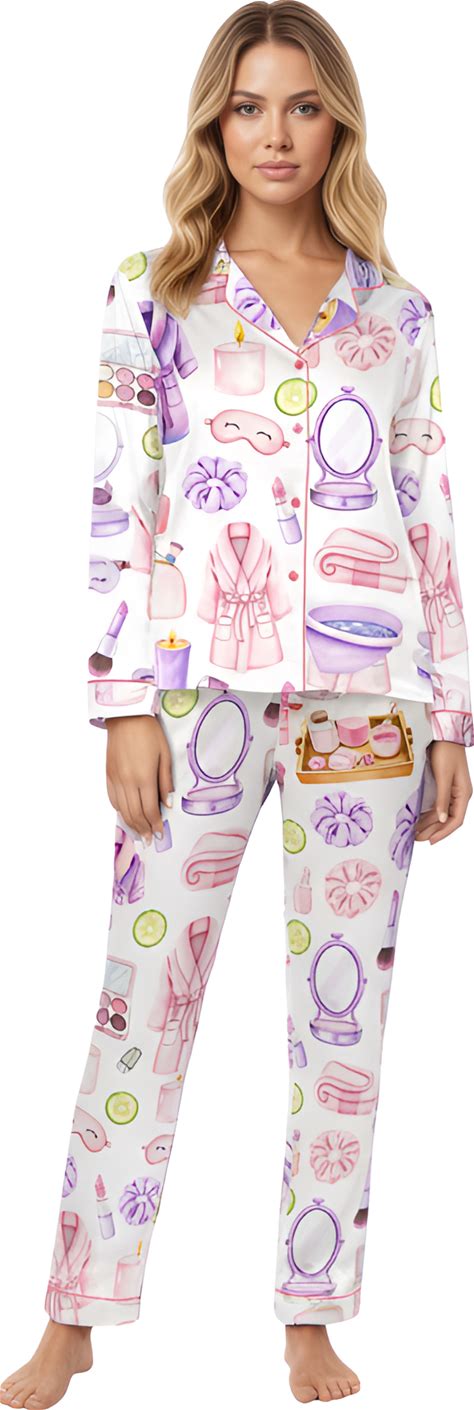 Spa Themed Satin Pajama Set / L